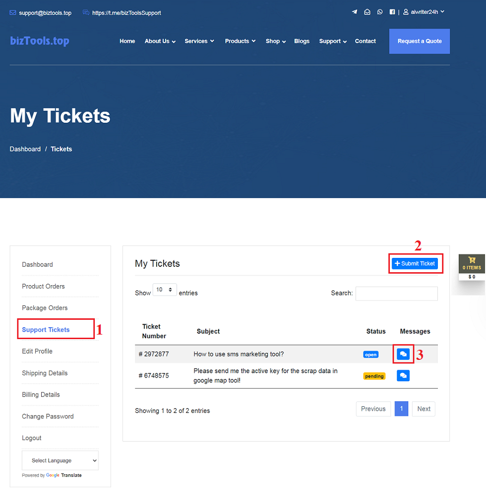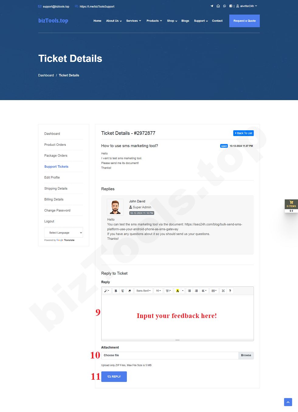 + 3rd: Click to edit your support ticket or reply the feedback of admin.