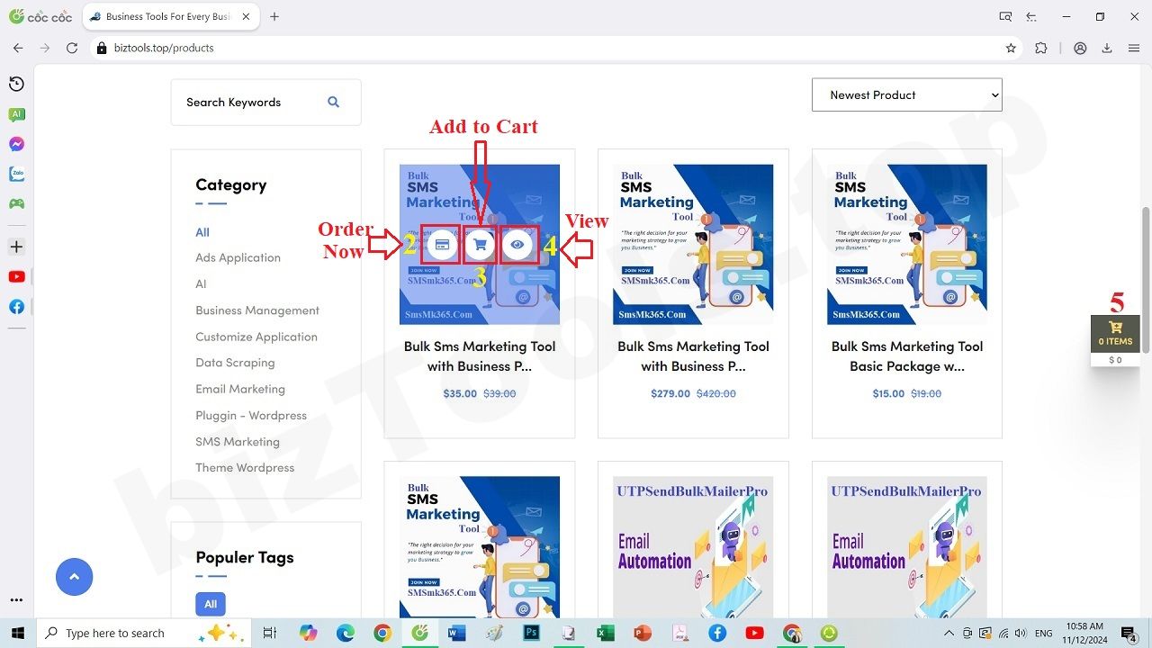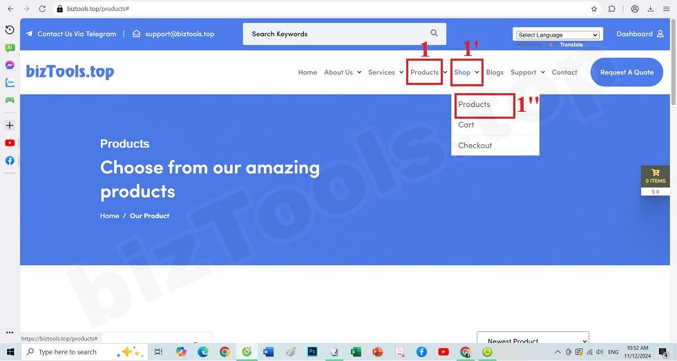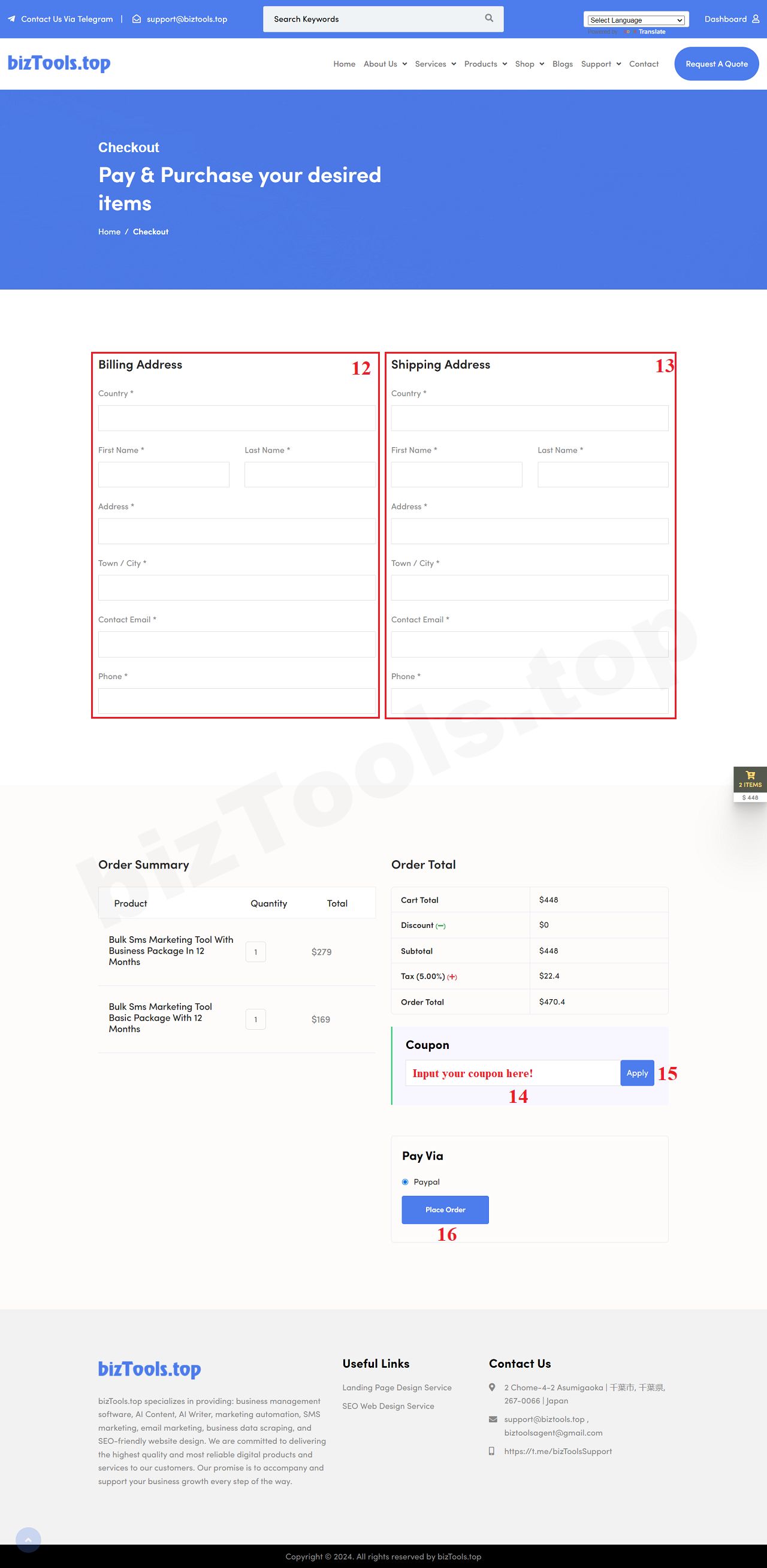 To order and pay for the products you ordered on bizTools.top, follow these steps: