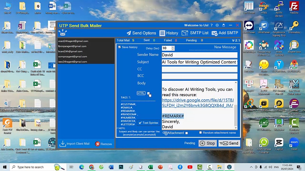 UTPSendBulkMailerPro is a tool that helps you automatically send bulk emails with anti-spam and security mechanisms...