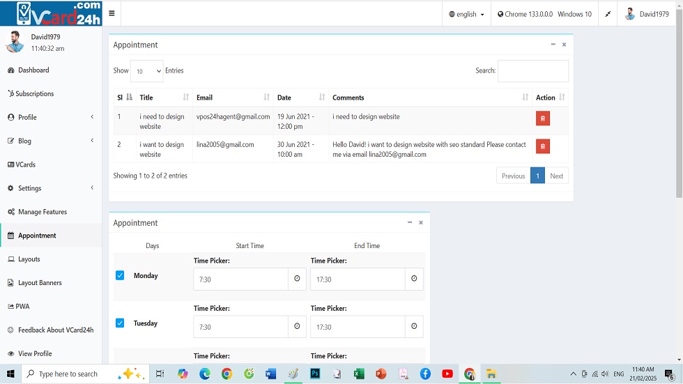 + Integrated Appointment Scheduling: Allows customers and partners to schedule appointments directly through your digital business card or profile. The system sends email notifications for new appointments, making it easier to manage and track.