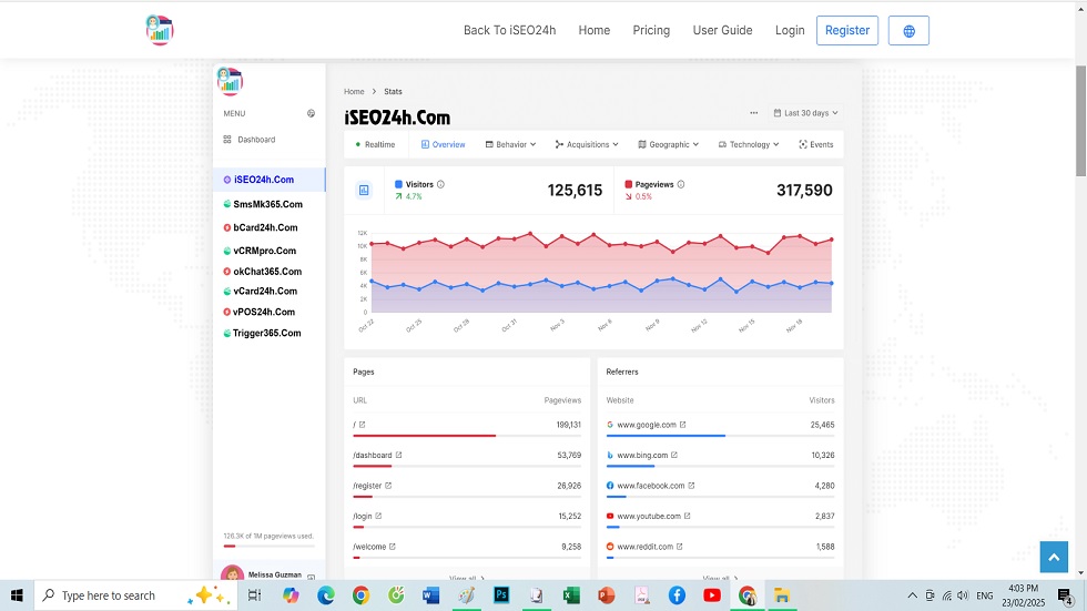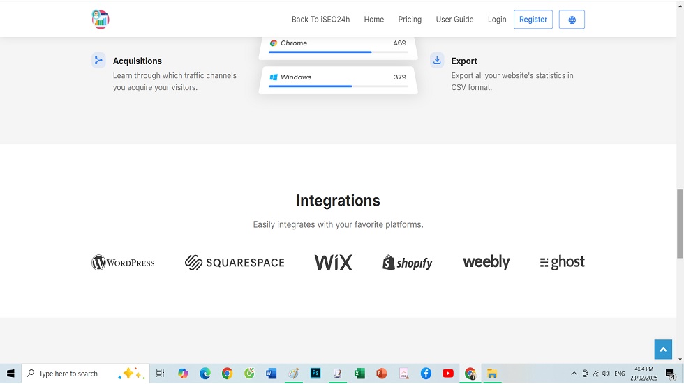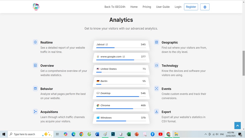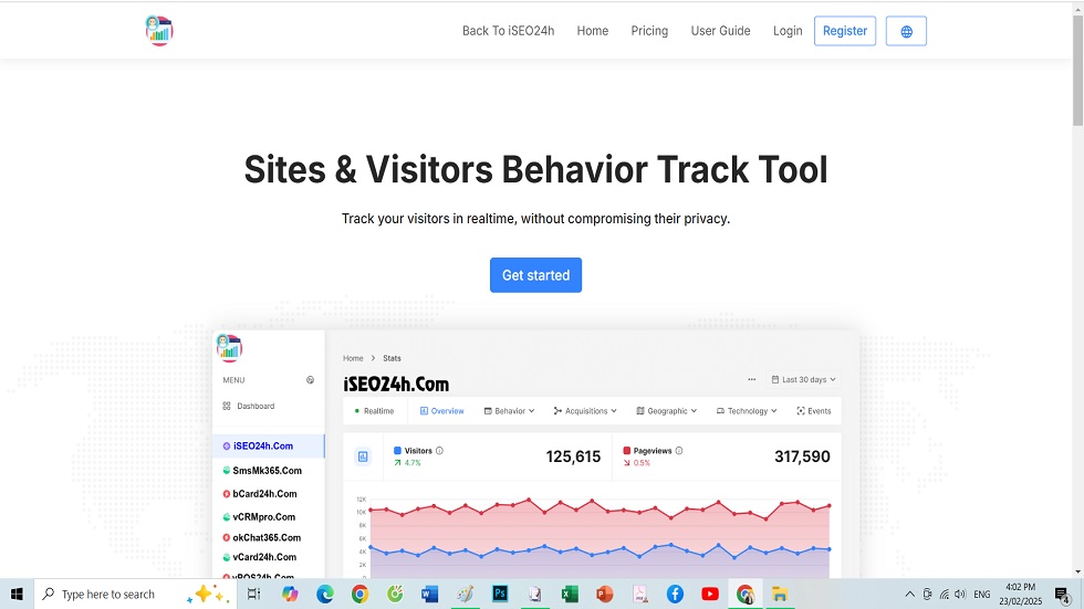 + Statistical Overview: Offers a comprehensive view of website statistics, including visit counts, traffic sources, and other key metrics.