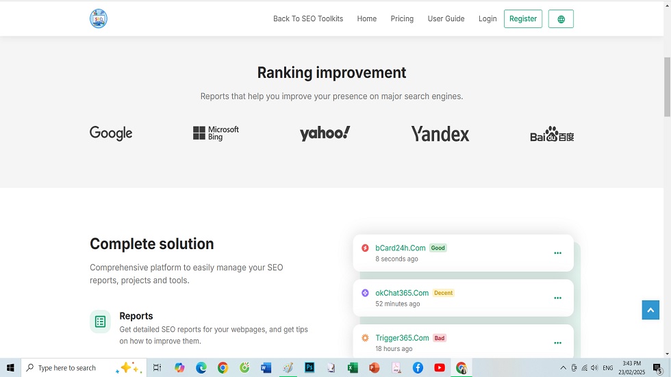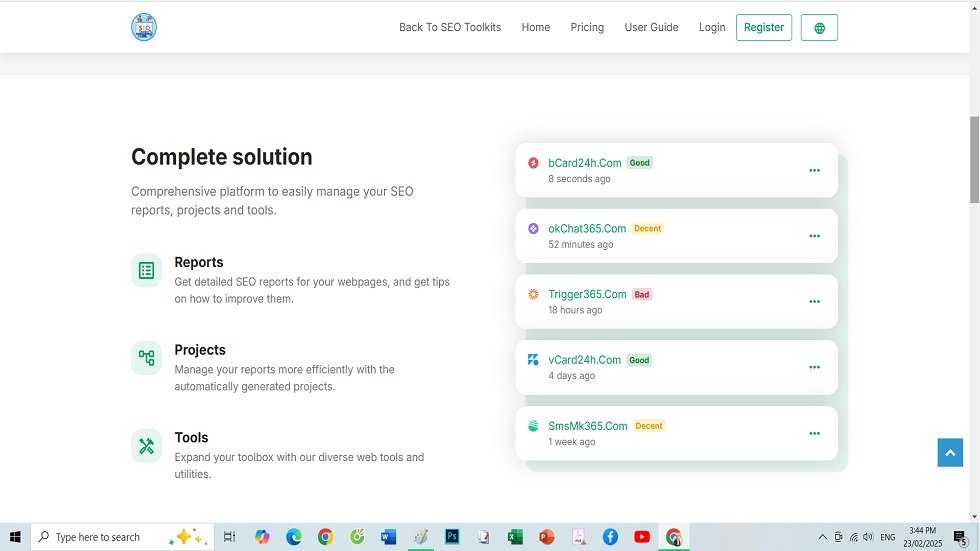 The SEO Health Check Tool provides in-depth SEO analysis, performance evaluation, security checks, project management, diverse web tools, advanced reports, and flexible service plans to enhance website rankings and efficiency.